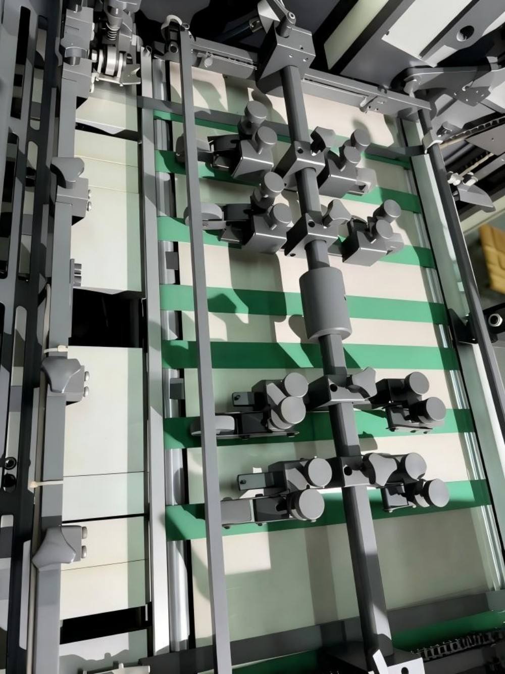 2) Механизмите за транспортиране на хартия, като глава за подаване на хартия, маса за подаване на хартия с вакуумно засмукване, преден водач и хващачи за хартия са специално проектирани да гарантират, че пресата може да транспортира субстрати от различни типове и с различна дебелина, като по този начин разширява обхвата на бизнеса.