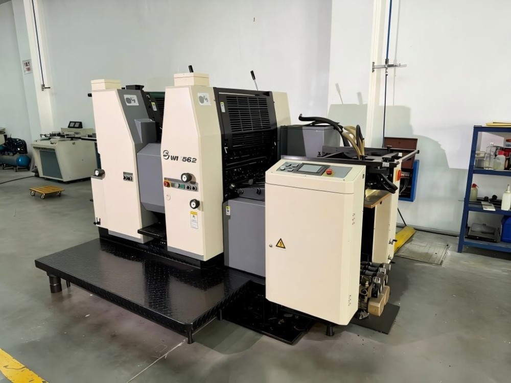 Двуцветните печатни модули позволяват на потребителите да отпечатват два цвята с едно минаване. Частите за транспортиране на хартия включват глава за подаване на хартия, маса за вакуумно засмукване, преден водач и хващачи за хартия. Те позволяват на двуцветната офсетова печатна преса A2 за търговски печат да работи с много видове хартия, от тънка до дебела хартия. Система за непрекъснато подаване на хартия е монтирана на масата за вакуумно засмукване с три въртящи се транспортни ленти. Тази система надеждно се справя с различни видове и дебелини хартия. Частта за подаване на хартия с въртящо се рамо поддържа движението на хартията стабилно и гладко дори при печатане с висока скорост.